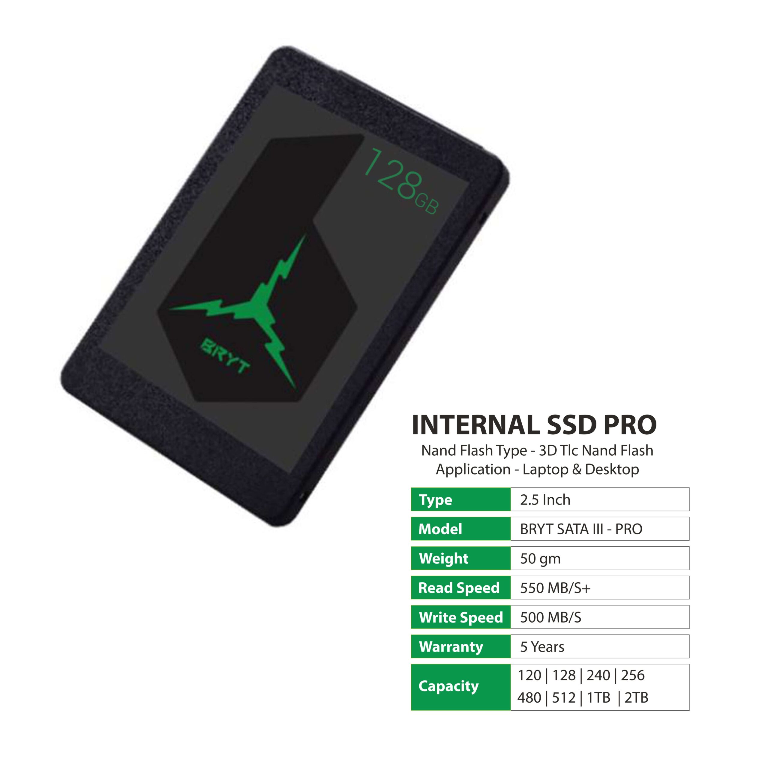 SSD Capacity- 128GB, 256GB, 512GB, 1TB, 2TB
